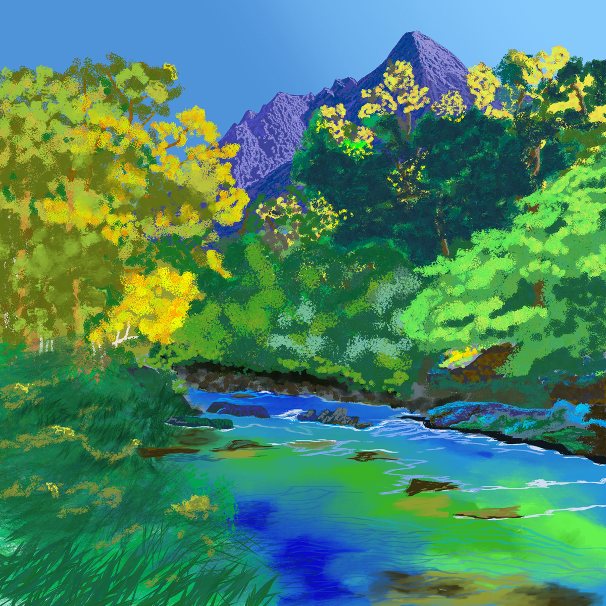 I think I have watched almost every single episode of Bob Ross. I even have a list of my favourite episodes. In spite of that, I have never actually painted along with him. This is the first time I have consciously "painted" a Ross-like landscape. I am now inspired to try others.