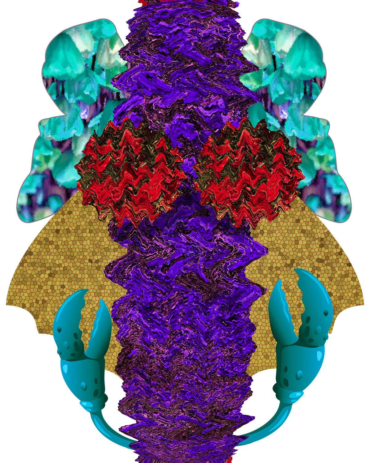 This is a middle section for the exquisite corpse exercise. I started with images of fields of flowers, even turned a couple of them upside down, and experimented with a lot of colour adjustments and filters in Photoshop to create this piece.